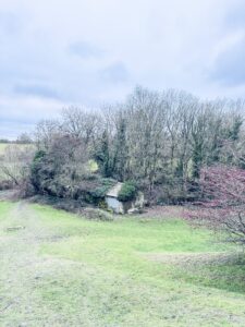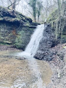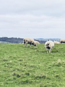 After the waterfall, the scenery changes from forest to open farmland. This section feels wider and more open, with views across fields. During our walk, we saw sheep and horses grazing nearby, which added to the rural feel of the trail.